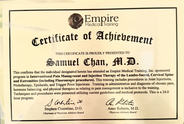 With over 50 years of medical experience, Dr. Samuel S. Chan has established himself as a respected authority with extensive experience in Workers’ Compensation, family medicine, private practice, and personal injury cases, including car accidents and Certified Qualified Medical Evaluator (QME).